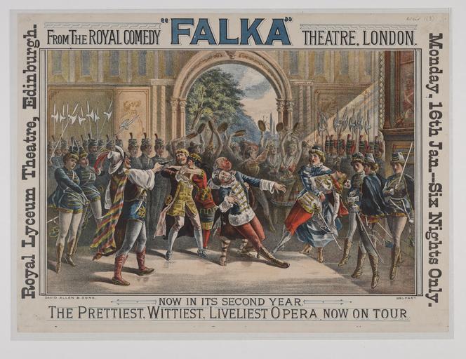 | Keywords: Falka - Weir Collection.jpg Monday 16th Jan - six nights only 'Falka' From the Royal Comedy Theatre London Now in its second year The prettiest wittiest liveliest opera now on tour Printed by David Allen Sons Belfast Size cm 37 50 exhibition history Institution National Library of Scotland Poster object history object type PD-old-70-1923 place of creation London; Edinburgh Weir 1 3 74601946 Falka - Weir Collection Uploaded with GWToolset Falka - Weir Collection http //deriv nls uk/56YK98Q/7442/74426329 2 jpg Images uploaded as part of NLS-WMUK collaboration Weir Collection |