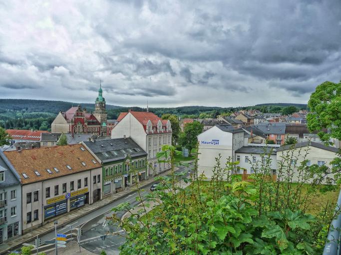 Keywords: falkenstein germany town urban city buildings architecture trees sky clouds hdr
