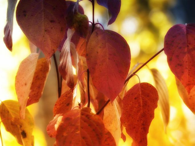 Keywords: fall autumn foliage laubwerk leaves nature close-up season seasonal vibrant back light branch outdoors free photos