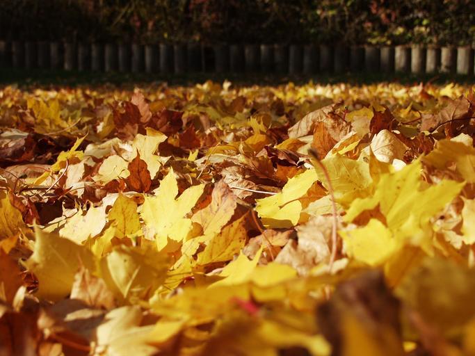 Keywords: fall foliage maple leaves fallen lying on the ground