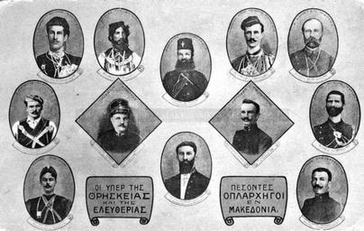Keywords: Fallen Greek Macedonian heoroes.JPG en Pantheon of fallen Greek heroes of the Macedonian Struggle Including Michael Moraitis Spyridonos Frangopoulos and Theodoros Askitis also the distinguished Vangelis Nikoloudis Pantelis Fiotakis Papapaschalis Kitsos Argyrakos Blatsiotis Konstantinos Kottas George Skalidis Sarantos Agapinos Marinos Liberopoulos and Vangelis Georgiou el Πάνθεον των εσόντων ηρώων του ακεδονικού Αγώνα Οι μορφές εμφανίζονται εντός κυκλικού ή τετράγωνου λαισίου στην κάτω λευρά του ο οίο αναγράφεται η ημερομηνία και ο τό ος θανάτου τους Δεσ όζουν στο κέντρο οι μορφές των ιχαήλ ωραΐτη Σ υρίδωνος Φραγκό ουλου και Θεόδωρου Ασκητή Διακρίνονται ε ισης ο Βαγγέλης ικολούδης ο Παντελής Φιωτάκης ο Πα α ασχάλης ο Κίτσος Αργυράκος λατσιώτης ο Κώττας ο Γεώργιος Σκαλίδης ο Σαράντος Αγα ηνός ο αρίνος Λυμ ερό ουλος και ο Βαγγέλης Γεωργίου http //www imma edu gr/imma/dbs/Artifacts/index html start 5 lq CE 9A CF 8E CF 84 CF 84 CE B1 show 1 Author Late 19th-early 20th Century Anonymous-EU Greek Struggle for Macedonia Macedonians Greeks |