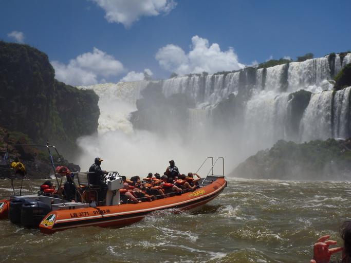 Keywords: falls waterfall boat argentina tour boat tourists water huge enormous falling flowing landscape wilderness scenery natural wild outdoor environment scenic land nature