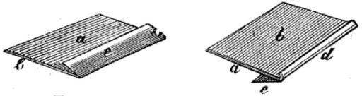 Keywords: Fals ombøjet kant NC Rom pg428.png Fals - ombøjet kant - en lille skarp ombøjet Fals Det første og sidste Ark forsynes nu med et Forsatspapir enten hvidt Skrivepapir eller farvet Valsetrykpapir dersom Bogen skal være rigtig fin Man tager et halvt Ark og bøjer en Strimmel tilbage paa tværs af rigelig Arkenes Bredde saa Papiret ligger dobbelt venstre tegning a b Den Strimmel Papir som bliver tilovers afklippes ikke men lægges ind over det ombøjede Blad saa at Papiret fra den ene Side nu er trefoldet som a b c viser på venstre tegning hvor den sidst lagte Flig c ligger opad lidt aaben Man vender Papiret og giver det fra den modsatte Side en lille skarp ombøjet Fals paa ½ Tommes Bredde som d viser på højre tegning Bogen er nu i Stand til Heftning http //runeberg org/haandgb/0428 html Side 427 og 428 Book folding Falzen Papiertechnik http //runeberg org/haandgb/0428 html - Haandgerningsbog for Ungdommen 1894 Niels Christian Rom 1839-1919 All material is in the public domain by Projekt Runeberg at http //runeberg org/haandgb/ PD-old Bookbinding illustrations How to Bind a Book Haandgerningsbog 1894 by N C Rom Niels Christian Rom 1894 books |