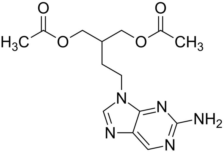 | Keywords: Famciclovir 200.svg validSVG Structure of 2- 2- 2-amino-9H-purin-9-yl ethyl propane-1 3-diyl diacetate Own 2014-04-21 Emeldir <span class signature-talk >talk</span> Chemical structure verified https //upload wikimedia org/wikipedia/commons/3/34/Famciclovir_200 svg 1S/C14H19N5O4/c1-9 20 22-6-11 7-23-10 2 21 3-4-19-8-17-12-5-16-14 15 18-13 12 19/h5 8 11H 3-4 6-7H2 1-2H3 H2 15 16 18 GGXKWVWZWMLJEH-UHFFFAOYSA-N 104227-87-4 Synonyms <small>2- 2- 2-Amino-9H-purin-9-yl ethyl propane-1 3-diyl diacetate 2-2- 2-Amino-9H-purin-9-yl ethyl-1 3-propanediol diacetate 2-2- 2-Amino-9H-purin-9-yl ethyl-1 3-propanediol diacetate ester 2-2- 2-Amino-9H-purin-9-yl ethyl-1 3-propanediol diacetate ester 22- 2-Amino-9H-purin-9-yl ethyltrimethylene diacetate 9-4-Acetoxy-3- acetoxymethyl but-1-yl-2-aminopurine Acetic acid 2-acetoxymethyl-4- 2-amino-purin-9-yl -butyl ester AK-120 AV-42810 BRL 42810 BRL-42810 Famciclovir Famciclovirum Famciklovir Famsikloviiri Famsiklovir Famvir FCV</small> PD-chem Purines Acetate esters Primary amines |