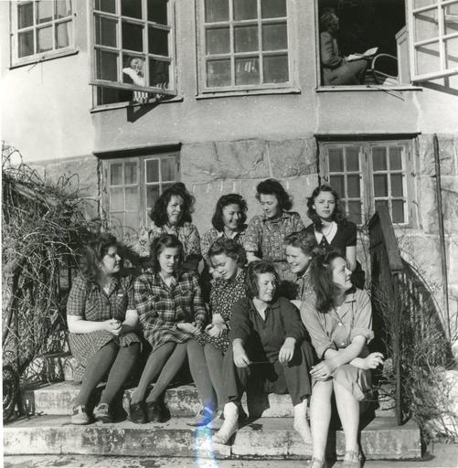 | Keywords: familieforlegninger vårslipp 2012 vårslipp2012 nordmenn i sverige under krigen nordmennisverigeunderkrigen flyktningemottak amerikahjelpen rättvik people groupshot AMERIKA-HJELPEN TIL NORSKE FLYKTNINGER Av de 100,000 dollars som amerikanske borgere har gitt til beste for norske flyktninger i Sverige, har komiteen for Amerika-hjelpen anvendt et beløp til innkjøp av en vakker villa i Stocksund utenfor Stockholm, som hjem for unge piker. Huset inneholder store salonger, bibliotek, spisesal, hall og forsamlingssal og gir plass til innkvartering av 35 piker med betjening.Bildet viser en gruppe av de unge pikene på trappen ut mot haven.Stockholm 20.3.45 RA/PA-1209/Uc/72/3/S5641 AMERIKA-HJELPEN TIL NORSKE FLYKTNINGER Av de 100,000 dollars som amerikanske borgere har gitt til beste for norske flyktninger i Sverige, har komiteen for Amerika-hjelpen anvendt et beløp til innkjøp av en vakker villa i Stocksund utenfor Stockholm, som hjem for unge piker. Huset inneholder store salonger, bibliotek, spisesal, hall og forsamlingssal og gir plass til innkvartering av 35 piker med betjening.Bildet viser en gruppe av de unge pikene på trappen ut mot haven.Stockholm 20.3.45 RA/PA-1209/Uc/72/3/S5641 |