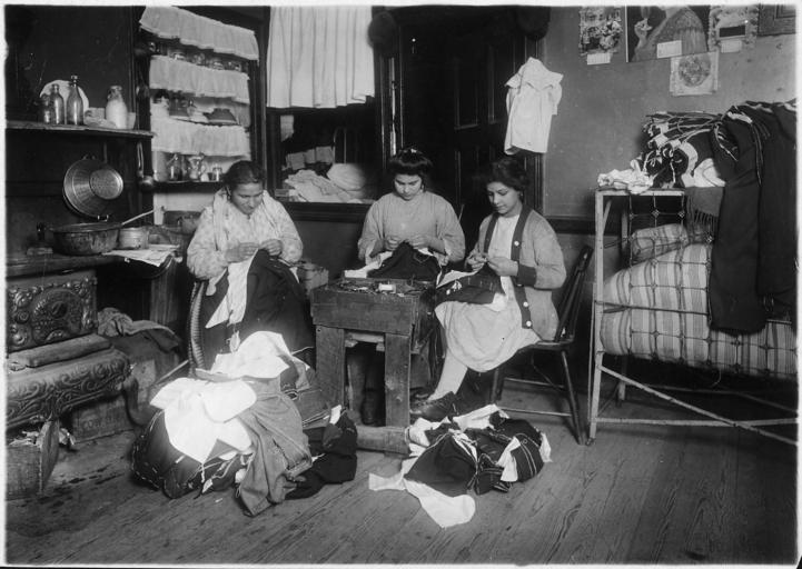 | Keywords: nara:arcid=523527 u.s. national archives usnationalarchives lewis hine lewishine blackandwhite monochrome black and white Original Caption: Family finishing pants. None of them spoke English. A neighbor's child said the young girl was 13 years old. In the next room,the young girl was finishing pants and explained, I came home with a toothache. New York City, March 1912 U.S. National Archives’ Local Identifier: 102-LH-2883 Photographer: Hine, Lewis Subjects: Child Labor National Child Labor Committee Working Conditions Factory Persistent URL: research.archives.gov/description/523527 Repository: Still Picture Records Section, Special Media Archives Services Division (NWCS-S), National Archives at College Park, 8601 Adelphi Road, College Park, MD, 20740-6001. For information about ordering reproductions of photographs held by the Still Picture Unit, visit: www.archives.gov/research/order/still-pictures.html Reproductions may be ordered via an independent vendor. NARA maintains a list of vendors at www.archives.gov/research/order/vendors-photos-maps-dc.html Access Restrictions: Unrestricted Use Restrictions: Unrestricted Original Caption: Family finishing pants. None of them spoke English. A neighbor's child said the young girl was 13 years old. In the next room,the young girl was finishing pants and explained, I came home with a toothache. New York City, March 1912 U.S. National Archives’ Local Identifier: 102-LH-2883 Photographer: Hine, Lewis Subjects: Child Labor National Child Labor Committee Working Conditions Factory Persistent URL: research.archives.gov/description/523527 Repository: Still Picture Records Section, Special Media Archives Services Division (NWCS-S), National Archives at College Park, 8601 Adelphi Road, College Park, MD, 20740-6001. For information about ordering reproductions of photographs held by the Still Picture Unit, visit: www.archives.gov/research/order/still-pictures.html Reproductions may be ordered via an independent vendor. NARA maintains a list of vendors at www.archives.gov/research/order/vendors-photos-maps-dc.html Access Restrictions: Unrestricted Use Restrictions: Unrestricted |
