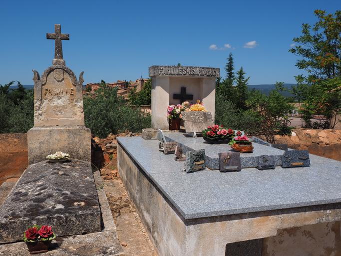 Keywords: family grave cemetery graves gravestone old cemetery roussillon tomb mourning grave stones headstone memorial stone tomb figure cross death stone grabschmuck resting place rest farewell grave tombstone blumenschmunk die funeral commemorate memory faith religion survivors monument christianity funeral place places of interest historically landmark architecture silent eternity loneliness final resting place old been thinking monuments monumental burial ground god's acre churchyard leichenhof deceased religious secular rite bury