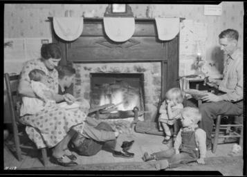 | Keywords: nara:arcid=532731 u.s. national archives usnationalarchives lewis hine lewishine blackandwhite monochrome black and white Original Caption: Family group of Fletcher Carden, Route #1, Andersonville, Tennessee, a night-watchman at the bunkhouses at Norris Dam. His home is on the townsite of Norris and will be moved. Carden has 12 children. He is shown here repairing shoes at the fireside, November 1933 U.S. National Archives’ Local Identifier: 142-H-113 Photographer: Hine, Lewis Subjects: New Deal, 1933-1939 Rural areas Tennessee (United States, North and Central America) state Water projects Persistent URL: research.archives.gov/description/532731 Repository: Still Picture Records Section, Special Media Archives Services Division (NWCS-S), National Archives at College Park, 8601 Adelphi Road, College Park, MD, 20740-6001. For information about ordering reproductions of photographs held by the Still Picture Unit, visit: www.archives.gov/research/order/still-pictures.html Reproductions may be ordered via an independent vendor. NARA maintains a list of vendors at www.archives.gov/research/order/vendors-photos-maps-dc.html Access Restrictions: Unrestricted Use Restrictions: Unrestricted Original Caption: Family group of Fletcher Carden, Route #1, Andersonville, Tennessee, a night-watchman at the bunkhouses at Norris Dam. His home is on the townsite of Norris and will be moved. Carden has 12 children. He is shown here repairing shoes at the fireside, November 1933 U.S. National Archives’ Local Identifier: 142-H-113 Photographer: Hine, Lewis Subjects: New Deal, 1933-1939 Rural areas Tennessee (United States, North and Central America) state Water projects Persistent URL: research.archives.gov/description/532731 Repository: Still Picture Records Section, Special Media Archives Services Division (NWCS-S), National Archives at College Park, 8601 Adelphi Road, College Park, MD, 20740-6001. For information about ordering reproductions of photographs held by the Still Picture Unit, visit: www.archives.gov/research/order/still-pictures.html Reproductions may be ordered via an independent vendor. NARA maintains a list of vendors at www.archives.gov/research/order/vendors-photos-maps-dc.html Access Restrictions: Unrestricted Use Restrictions: Unrestricted |