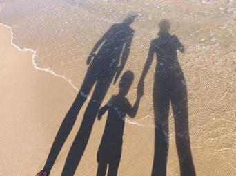 Keywords: family shadows sea seaside beach summer vacation together child sand boy water holiday couple mother father coast