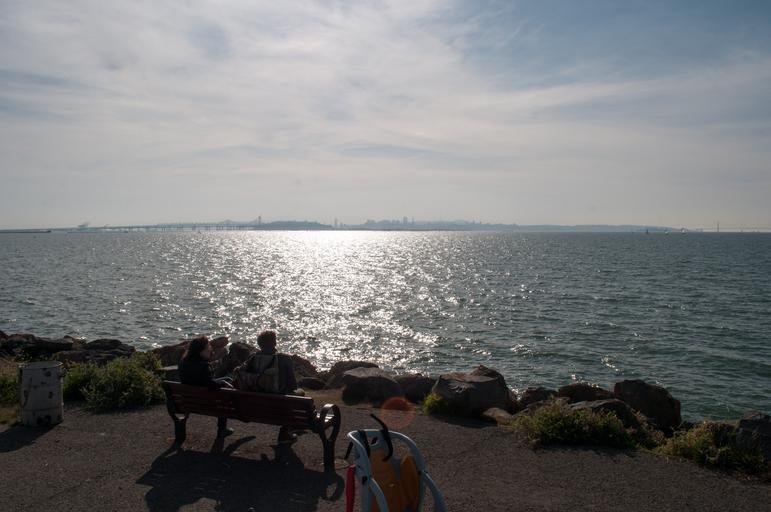 Keywords: shore outdoor coast seaside landscape water ocean beach With San Francisco city center in distance in middle. With San Francisco city center in distance in middle.