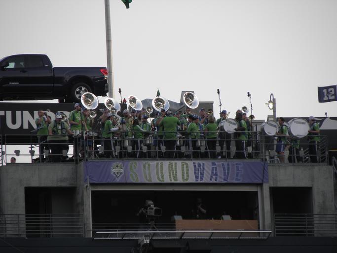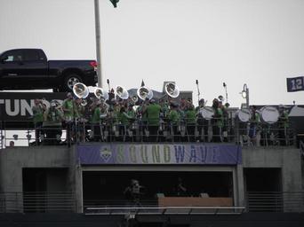Keywords: Fan Band.JPG The Seattle Sounders are against FC Barcelona at Qwest Field in Seattle USA in 08/05/09 Taken by author 08/05/09 WinDev Seattle Sounders FC Seating areas of Qwest Field