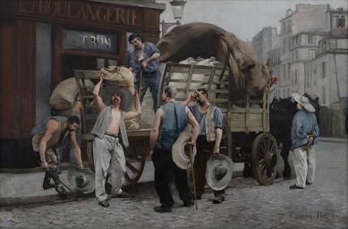 Keywords: Farine Carrier-Belleuse Petit Palais PDUT01445.jpg Artwork Creator Louis-Robert Carrier-Belleuse Porteurs de farine Scène parisienne Flour carriers Scene from Paris 1885 oil canvas Museum Petit Palais Room 4 Courbet and realism object history credit line ProvenanceEvent purchase Legs Dutuit 1902 1985 bottom right Louis Carrier-Belleuse accession number Inv PDUT01445 Marie-Lan Nguyen 2013 PD-old-100-1923 other versions Paris 1880 1885-01-01 Oil paintings of cityscapes Paris Paintings of men of France Paintings of workers Bakeries in art Bakeries in Paris Horse-drawn vehicles in Paris Paris in the 1880s 1885 1885 paintings Louis-Robert Carrier-Belleuse Paintings in the Musée des Beaux-Arts de la Ville de Paris Legs Dutuit au musée des Beaux-Arts de la Ville de Paris 19th-century paintings of workers 19th-century urban life in painting Urban life paintings of Paris Paintings of Paris streets Genre paintings of Paris Paintings of vehicles in Paris History of use of horses 19th-century genre paintings from France People of France in 1885