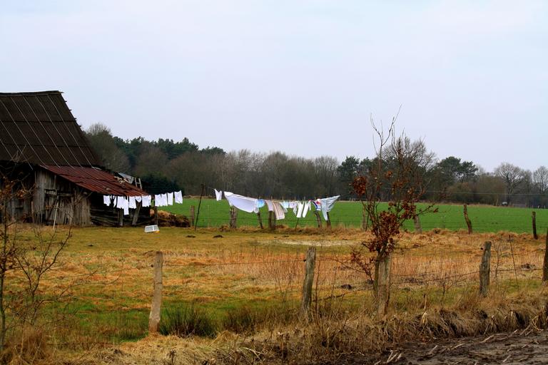 Keywords: farm hof clothes line fence meadow field old house nature pasture fence lower saxony