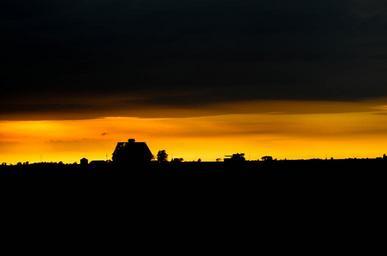 Keywords: Silhouette of a farm after a storm went through sunset sun storm silhouette barn dark farm horizon combine oldbuilding