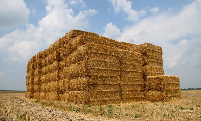 Keywords: farm rural rustic field crop sky clouds summer bales baled stack country countryside agriculture nature outside