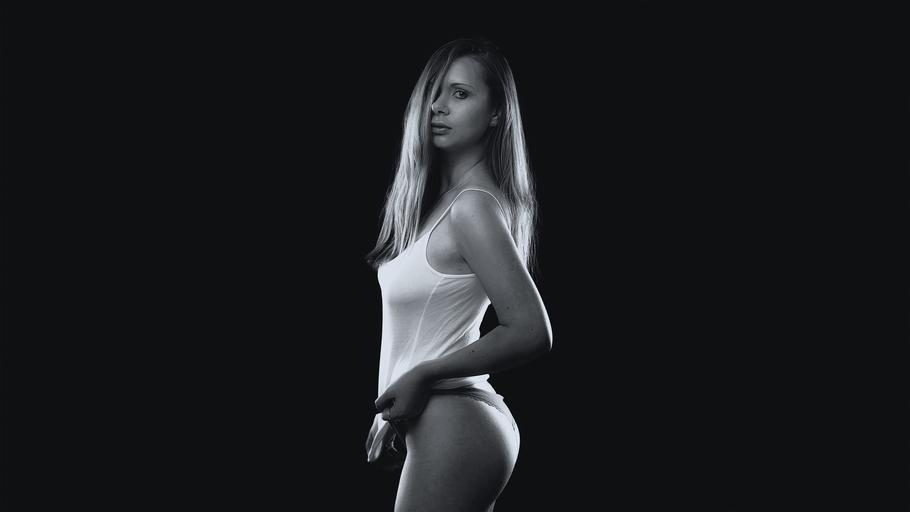 Keywords: fashion girl in a vest black background photoshoot studio hair photo girls model girl style athletic girl erotic beautiful female view body eyes posture beauty