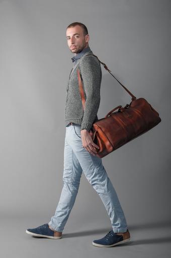 Keywords: fashion shooting guy man male person leather bag style casual cool model attractive handsome studio