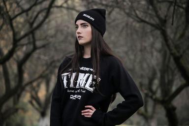 Keywords: fashion street fashion black hair cap appearance youth portrait black woman szatynka black and white time girl young beauty