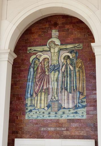 Keywords: fatima place of pilgrimage pilgrimage portugal believe make a pilgrimage pilgrim religion christianity church image mosaic passion suffering christ good friday crucifixion mourning death grieve crucifix