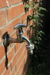 Keywords: faucet brick wall bricks masonry gardena garden hose garden casting water gardening irrigation