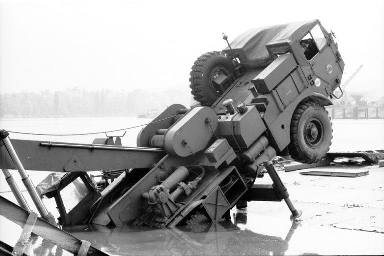 Keywords: Faun Autokran LK 1212-485 13to.jpg Faun LK 1212/485 Autokran nach Bruch einer Hohlplattenfähre ownphoto 1977 powidl Work accidents Fahrzeugkrane Bw Military accidents Black and white photographs of vehicles 1977 photographs Faun vehicles Bundeswehr in 1977 |