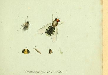 | Keywords: Fauna Germanica, Diptera 1793, vol.1, p58, Stratiomys hydroleon Fabr..jpg http //biodiversitylibrary org/page/12721192 page 58 Odontomyia hydroleon Linnaeus 1758 labelled as Stratiomys hydroleon Fabr de http //biodiversitylibrary org/page/12721194 Beschreibungsseite 60 21 Die Wasserwaffenfliege An Waſſergewächſen; nicht häufig Im Sommer + Natürliche Gröſſe Vergröſſerung a Vergröſſerter Kopf b Fühlhorn c Schildchen d Eine clava halterum Jakob Sturm 2014-05-27 Biodiversity Heritage Library 1793-1805 1-502 58 dx doi org/10 5962/bhl title 12433 Nürnberg Latin German http //www biodiversityheritagelibrary org/bibliography/12433 1793 Georg Wolfgang Panzer; Jakob Sturm PD-old-100 <gallery> File Odontomyia hydroleon Linnaeus 1758 labelled as Stratiomys hydroleon Fabr with subcaption whitened cut out png File Odontomyia hydroleon Linnaeus 1758 labelled as Stratiomys hydroleon Fabr Panzer Sturm 1793 whitened clean png </gallery> Odontomyia hydroleon Fauna Germanica Diptera Volume 1 Panzer Sturm |
