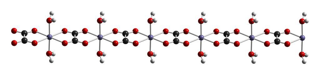 | Keywords: Fe(C2O4)(H2O)2-chain-from-xtal-2008-CM-3D-balls.png Ball-and-stick model of part of the crystal structure of iron II oxalate dihydrate FeC<sub>2</sub>O<sub>4</sub>·2H<sub>2</sub>O Colour code Iron Fe grey-blue Carbon C grey-black Oxygen O red Hydrogen H white Crystal structure from http //dx doi org/10 1007/s00269-008-0241-7 Phys Chem Minerals 2008 C35 467 “475 Image generated in http //www crystalmaker com/ CrystalMaker 8 2 Own 2010-07-06 Ben Mills Benjah-bmm27 Images by Ben Mills Crystal structures of iron II oxalate dihydrate Crystal structures in space group number 15 |