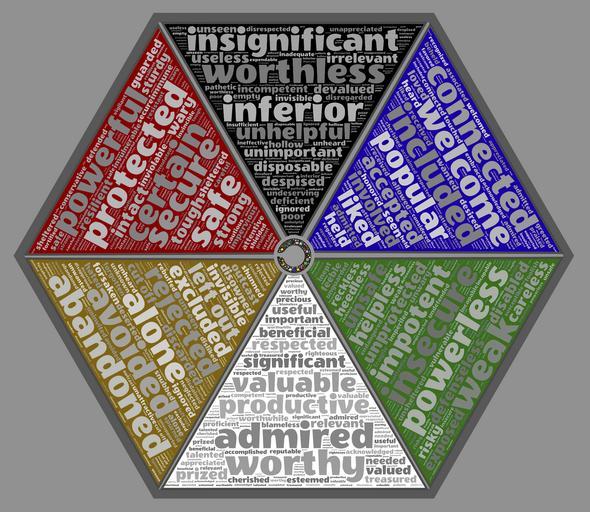 Keywords: fear aversion hope desire ego persona insecurity security protection survival dualism opposites polarities binary safety value connection comfort discomfort preferences judgment risk reward punishment plus minus positive negative perspective viewpoint distinction contrast division conflict hexagon shape psychology psyche mandala gray background |