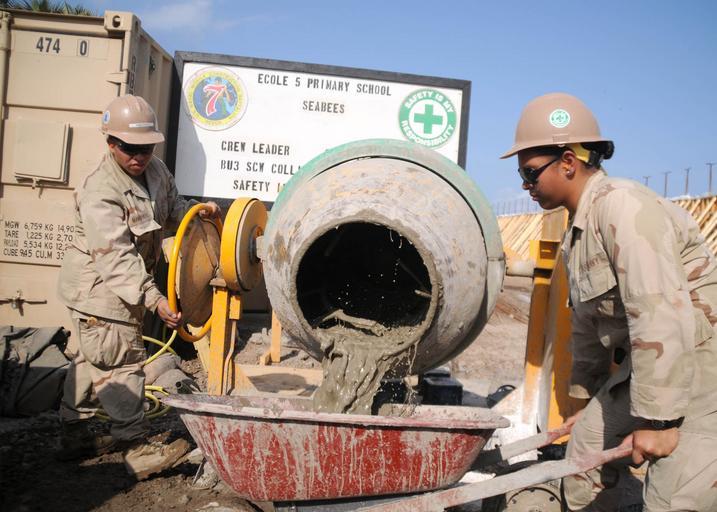 | Keywords: Fearless NMCB-74 Continues the Seabee Mission in Africa DVIDS350113.jpg en Seaman Bianca Manzanero left and Seaman Haani Leah both assigned to Naval Mobile Construction Battalion 74 Detail Horn of Africa rinse a mortar mixer used to mix sand cement lime and water to create stucco NMCB-74 Detail Horn of Africa is deployed to Combined Joint Task Force-Horn of Africa to assist in building partner nation capacity and promoting regional stability 2010-12-11 Petty Officer 2nd Class Michael Lindsey https //www dvidshub net/image/350113 101211-N-+++++-025 2010-12-15 22 13 DJIBOUTI DJ PD-USGov-Military-Navy Combined Joint Task Force - Horn of Africa Images from DoD uploaded by Fæ |