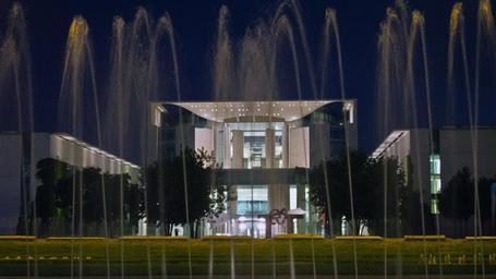 Keywords: federal chancellery germany berlin evening water springb fountain