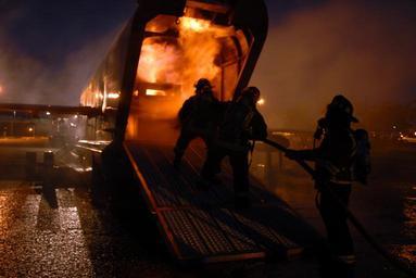 | Keywords: Federal firefighters combat a fire during aircraft training evolution DVIDS55305.jpg en Federal firefighters assigned to Navy Region Hawaii Federal Fire Department combat a fire during an aircraft firefighting training evolution with the Mobile Aircraft Firefighting Training Device Aug 29 at Navy Region Hawaii Federal Fire Department Headquarters in Pearl Harbor Hawaii The MAFTD is a state-of-the-art training tool which resembles an aircraft and provides different live fire and smoke scenarios for training to increase federal firefighter readiness and their ability to respond to aircraft fire and rescue emergencies U S Navy photo by Mass Communication Specialist 1st Class James E Foehl RELEASED 2007-08-29 Petty Officer 1st Class James Foehl https //www dvidshub net/image/55305 070829-N-+++++-017 2007-09-05 09 53 PEARL HARBOR HI US PD-USGov-Military-Navy Firefighting training Images from DoD uploaded by Fæ |