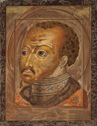 | Keywords: Fedor I of Russia by Solntsev after parsuna (1840s, litograph).jpg Федо Иоаннович ца ь Х омолитог афия с па суны 1840-е гг http //historydoc edu ru/catalog asp cat_ob_no 15616 ob_no 13152 rt print 1 Х омолитог афия восп оизводит надг обный по т ет находившийся до конца XIX столетия в А хангельском собо е осковского К емля По т ет был выполнен в 1630-х гг в технике па суны от лат persona; живопись конца XVI XVII вв демонст и ующая пе еход от т адиционных п иемов иконописного письма к по т етной живописи Изоб ажение написано на липовой доске темпе ой по левкасу а по т ете у ца я Федо а Иоанновича п одолговатое лицо высокий лоб большие глаза навыкате длинный «яст ебиный» нос ко откие вьющиеся волосы небольшие усы и бо ода Ца ь одет в кафтан асшитый д агоценными камнями Пове х кафтана надета шуба с го ностаевым во отником Английский дипломат Джайлс Флетче побывавший в оскве в 1588 1589 гг отмечал что Федо Иоаннович « осту малого п иземист и толстоват телосложения слабого и склонен к водяной; нос у него яст ебиный поступь нетве дая от некото ой асслабленности в членах; он тяжел и недеятелен но всегда улыбается так что почти смеется» см Флетче Джайлс О госуда стве Русском Глава двадцать шестая Х омолитог афия была выполнена по исунку академика живописи Федо а Г иго ьевича Солнцева 1801 1892 1840-е гг Х омолитог афия была выполнена по исунку академика живописи Федо а Г иго ьевича Солнцева 1801 1892 Feodor I of Russia's parsuna 01 Files uploaded by Shakko from various sources Fedor Solntsev PD-old |