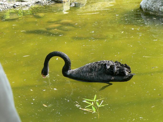 Keywords: Feeding black swan Cygnus atratus.JPG / black swan took the foto on the hamburg zoo 2006-08 LadyofHats Cygnus atratus captive swimming Birds at Tierpark Hagenbeck