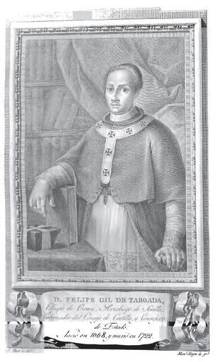 | Keywords: Felipe Gil de Taboada.jpg Retrato del prelado español Felipe Antonio Gil de Taboada 1668-1722 que fue arzobispo de Sevilla obispo de Osma y presidente del Consejo de Castilla Falleció en 1722 y fue sepultado en la cripta de la iglesia del Sagrario de Sevilla España Libro «Retratos de Españoles ilustres» publicado por la Real Imprenta de Madrid Según la información brindada en el prólogo las imágenes contenidas y los textos fueron realizados por distintos autores 1791 Al pie de la imagen figuran los datos de su autor PD-old-100 DEFAULTSORT Gil de Taboada Felipe Felipe Antonio Gil de Taboada Retratos de Españoles ilustres Engraved portraits |