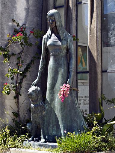 Keywords: female statue concrete cemetery flowers death memorial tombstone grave sculpture stone sculpture monument sky memory remembering grave yard mausoleum buenos aires argentina