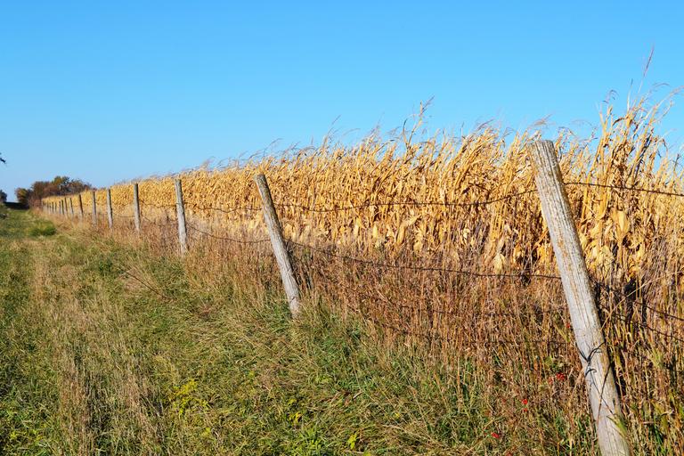 Keywords: fence cornfield farm harvest country countryside grow nature farming field corn yellow crop corn field agriculture rural