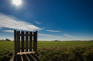 Keywords: fence landscape lonely shadow sun blue sky green meadows grass nature summer outdoor field sky green rural countryside agriculture summer landscape