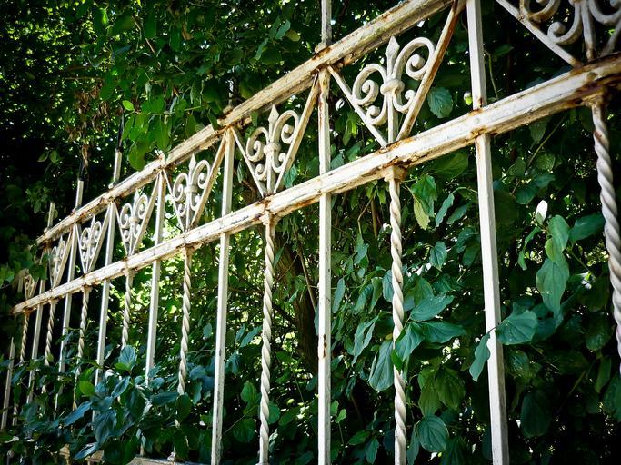 Keywords: fence old metal iron decay transience rusty stainless garden fence ivy corrosion
