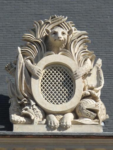 Keywords: Fenestron 'Le loup voit' (Invalides).jpg Louvois who built them for the king of France Louis XIV fr Fenestron Le loup voit dans la cour de l'hôtel des Invalidese Paris 7 e arr en hommage à Louvois qui les avait fait constuire pour Louis XIV own Tangopaso 2014-03-20 48 856216 2 312755 heading E PA00088714 Cour d'honneur des Invalides Oval windows François Michel Le Tellier de Louvois Sculptures of wolves |