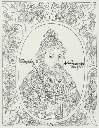 | Keywords: Feodor I of Russia (Titulyarnik).jpg  Федо Иванович Источник иллюст ации Д А Ровинский  ате иалы для  усской иконог афии в 12 выпусках СПб Экспедиция заготовления госуда ственных бумаг 1884-1891 http //www rulex ru/rpg/portraits/36/36395 htm century 17 anonymous Feodor I of Russia in portraits Tsar Files uploaded by Shakko from various sources PD-old |
