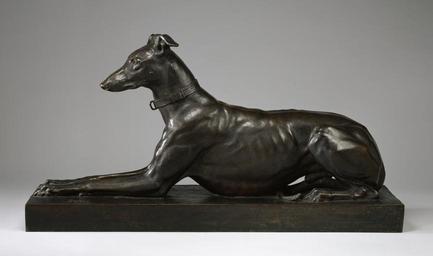 Keywords: Ferdinand Barbedienne - Greyhound - Walters 27475 - Profile.jpg Walters Art Museum artwork Creator Antoine-Louis Barye A patron named Comte Nicolaļ commissioned a marble statue of a greyhound To fulfill the commission Barye bought a black greyhound named Tom to serve as a model and the pet soon became a familiar sight to Barye's neighbors The location of the marble is no longer known but in 1889 George A Lucas discovered a plaster model now in the Peabody Institute that had been used by the marble carvers He subsequently ordered several casts including this one made by the foundry of Ferdinand Barbedienne modeled 1868; posthumously cast post-1875 bronze with warm brown patina cm 45 7 87 6 25 4 accession number 27 475 28254 William T Walters Baltimore 1889-1890 by purchase George A Lucas as agent Henry Walters city Baltimore Walters Art Museum Henry Walters Acquired by William T Walters 1889-1890 Signature Cast through from model sharp and clear BARYE The Works of Antoine-Louis Barye American Art Gallery New York New York 1889-1890 Best in Show The Dog in Art from the Renaissance to Today The Bruce Museum Greenwich; The Museum of Fine Arts Houston Houston 2006-2007 Untamed The Art of Antoine-Louis Barye The Walters Art Museum Baltimore; Philbrook Museum of Art Tulsa; The Henry Morrison Flagler Museum Palm Beach 2007-2008 place of origin Paris France Walters Art Museum license Sculptures by Antoine-Louis Barye Ferdinand Barbedienne Media contributed by the Walters Art Museum needs category review Sculptures in the Walters Art Museum |