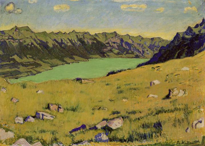 | Keywords: Ferdinand Hodler - Der Brienzersee von Breitlauenen aus, 1906.jpg oil canvas Öl und Ölfarbenstifte auf Leinwand cm 52 72 http //www christies com/lotfinder/LotDetailsPrintable aspx intObjectID 4875153 Christie's object history credit line Provenance Privatbesitz Schweiz signed bottom right F Hodler 1906 accession number Christie's online 4875153 PD-old-auto 1918 Landscape paintings by Ferdinand Hodler 1906 paintings | ||||