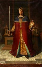 Keywords: Fernando III el Santo, rey de Castilla y León (Museo del Prado).jpg Retrato imaginario del rey Fernando III de Castilla apodado el Santo 1252 Fue hijo del rey Alfonso IX de León y de la reina Berenguela I de Castilla Durante su reinado se reunificaron definitivamente los reinos de León y Castilla y fueron conquistadas a los musulmanes las ciudades de Jaén Córdoba Sevilla y Murcia entre otras Falleció en 1252 y fue sucedido por su hijo Alfonso X el Sabio En 1671 fue canonizado por el Papa Clemente X y sus restos mortales que se conservan incorruptos se veneran en la catedral de Sevilla 1850 oil on canvas Size cm 140 223 Institution Museo del Prado Depositado en el Institution Ministry of Justice of Spain https //www museodelprado es/coleccion/obra-de-arte/fernando-iii-el-santo/4be2b9f2-953d-4014-9a60-60c870eac120 searchMeta fernando iii el santo accession number P04736 https //www museodelprado es/coleccion/obra-de-arte/fernando-iii-el-santo/4be2b9f2-953d-4014-9a60-60c870eac120 searchMeta fernando iii el santo PD-old-100 Ferdinand III of Castile in paintings Spanish 19th-century paintings in the Museo del Prado Chronological series of Kings of Spain commissioned by Isabella II Paintings in the Ministry of Justice of Spain Carlos Múgica y Pérez 1850 paintings in Spain |