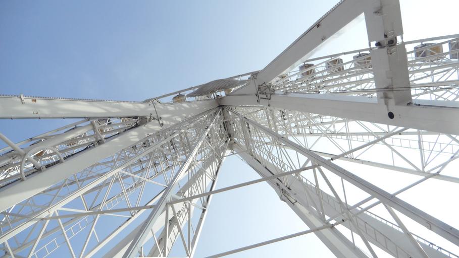 Keywords: ferris wheel ride park carnival fair fun round perspective high motion thrill enjoyment attraction fairground turning recreational pleasure recreation excitement entertainment amusement leisure spin