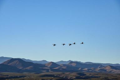 Keywords: Sandhill Cranes flying over the Refuge from a distance. Jessie Jobs/USFWS
