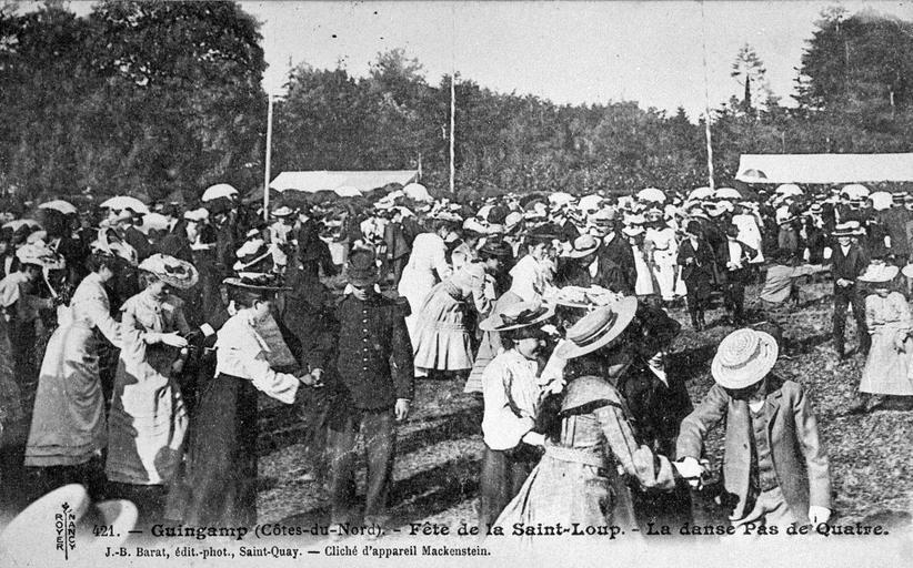 Keywords: Fête de la Saint Loup - Le Pas de quatre 03.jpg fr La danse Pas de quatre lors de la fête de la Saint Loup à Guingamp 1900 http //mediatheque dastum net/GEIDEFile/PHOT58829 jpg Archive 251337907951 File PHOT58829_jpg J -B Barat other versions PD-old-70-1923 Festival de la Saint-Loup Uploaded with UploadWizard Postcards of Côtes-d'Armor 1900s postcards of Bretagne Dances of Brittany |