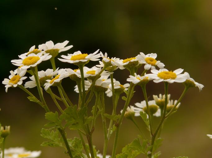 Keywords: feverfew blossom bloom white yellow tanacetum parthenium chrysanthemum parthenium bush shaped plant herb medicinal herb medicinal plant flora