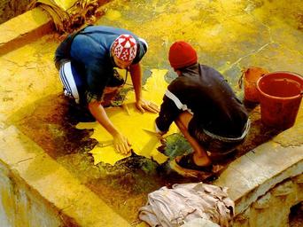 Keywords: fez tannery morocco old colorful moroccan leather color dying smelly yellow