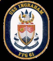| Keywords: Ffg61 crest.gif en The Crest The eagle our national symbol portrays swiftness strength and constant vigilance The trident characterizes Naval weaponry and sea prowess and symbolizes the combat readiness and modern weapon systems of FFG 61 The seven stars commemorate the third INGRAHAM's service - four battle stars earned for World War II one for the Korean War and two for the Vietnam conflict The wreath of laurel is emblematic of excellence and accomplishment and also refers to the gold medal awarded to Captain Ingraham by Congress for his gallant and judicious conduct at Smyrna The Shield Dark blue and gold are the colors traditionally associated with the US Navy The chain broken by the sword represents Captain Duncan Ingraham forcing the release of Martin Koszto a Hungarian confined by an Austrian warship who had earlier declared his intention of becoming an American citizen The sword also emphasizes the Naval protection Captain Ingraham provided the Hungarian The color red symbolizes the courage it took for Ingraham to stand his ground alone far from his country The crescent adapted from the Turkish national flag refers to where the American Captain held fast and took a stand in 1853 The color white is expressive of his purity of intent The separations of the shield honor the three previous destroyers named INGRAHAM ; the wavy divisions reflect the sea The disc with three of the colors of the Navy Unit Commendation Award commemorates the award earned in World War II by the http //www ingraham navy mil/site 20pages/crest aspx Author PD-USGov-Military-Navy USS Ingraham FFG-61 United States Navy frigates emblems |