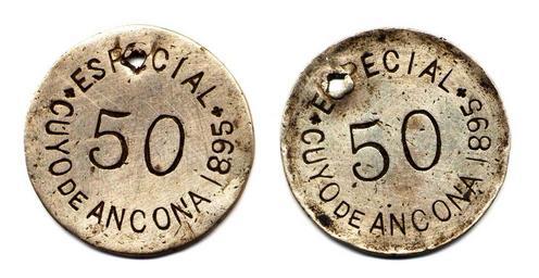 Ficha por $ 0.50 de El Cuyo de Ancona de 1895, Yucatán (01)(anverso y reverso).jpg (1454x751)